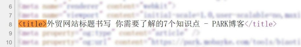 在SEO中,标题指得是页面源代码的<head>(头部)中,用<title></title>标注的那一段文字。你只需要打开你的某一个页面,然后 Ctrl+U 打开页面元代界面;然后再 Ctrl+F 搜索 <title>即可,后面展示出的那个文字就是当前页面的标题。