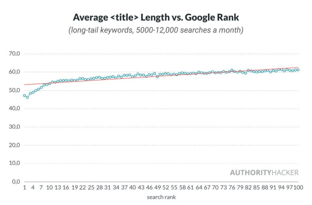 根据上方 authorityhacker.com 的统计,排名首页的标题平均长度在45-55字符之间。