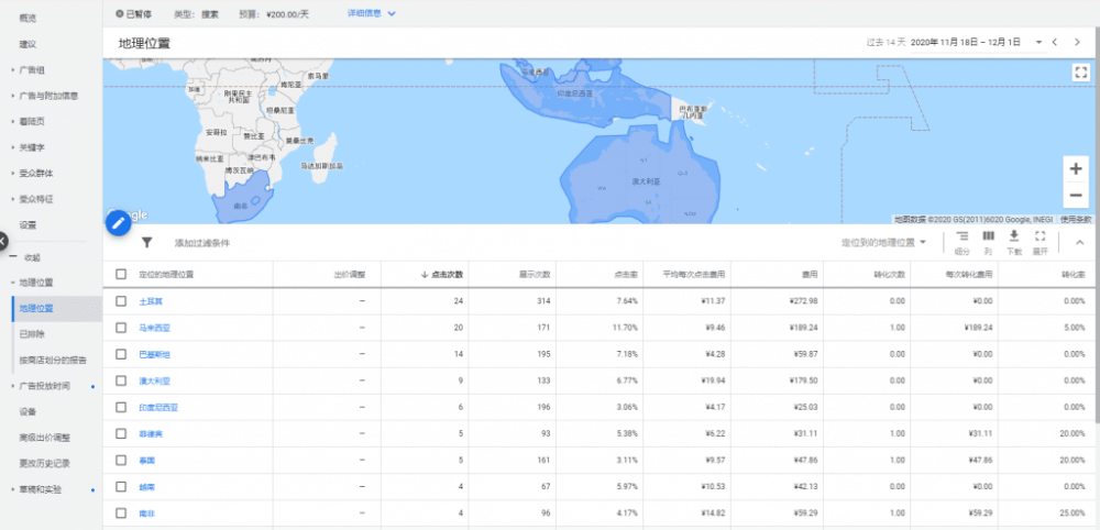 地理位置也一样,如果你选择自己搜索关键词来查看自己的广告的展示效果的话,如果与你设置的地理位置不符合,那么也是看不见自己广告的