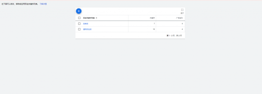 这个也是常出现的问题,多数是因为设置了“否定关键词列表”,注意在应用到广告系列的时候,一定不要将现有的关键词覆盖到。