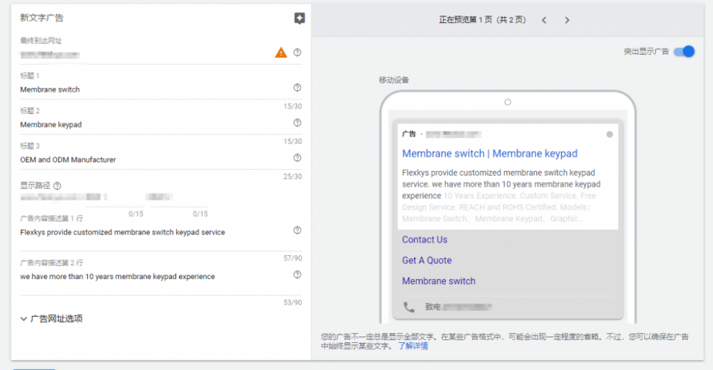 - 显示路径可以把产品的关键词或简称之类的放到里面,也有助于提高广告相关性