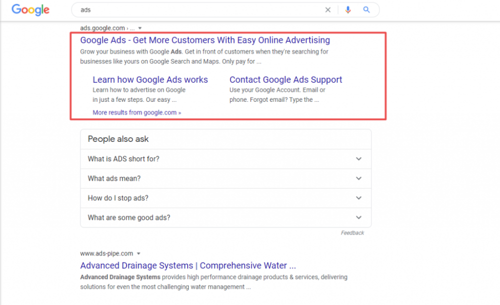 其次在搜索框内搜索Ads,然后打开第一个搜索结果。或是直接访问这个页面也可以(https://ads.google.com/intl/zh_US/home/)