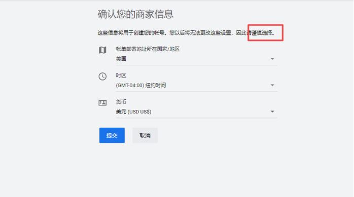 那么在确认商家这一步,你选择的国家和货币种类是对充值方式有影响的,比如选择人民币才能使用人工充值的功能,而如果使用美元结算,那就只能选择自动付款,而且如果你的国家选择美国,那么你绑定的卡就只能有美国的信用卡了。