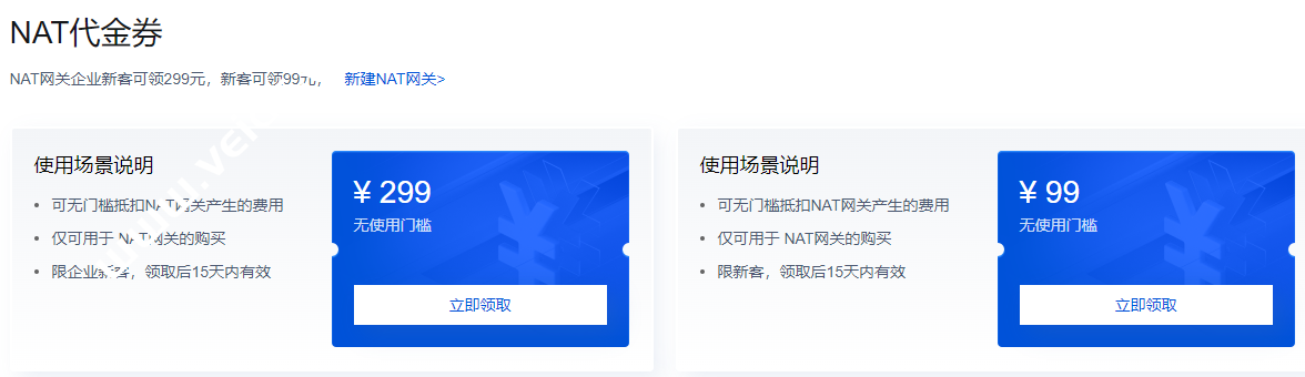 NAT网关企业新客可领299元,新客可领99