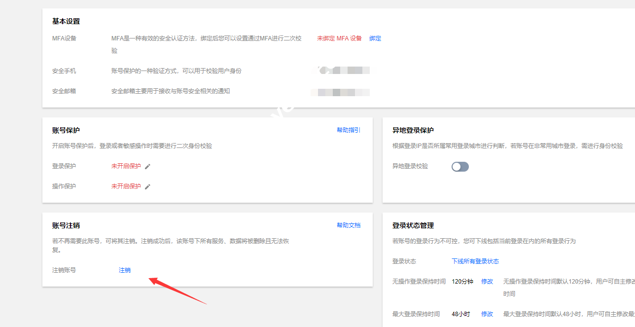 2.注销前必须确定没有任何的资产【域名、服务器、数据库等】