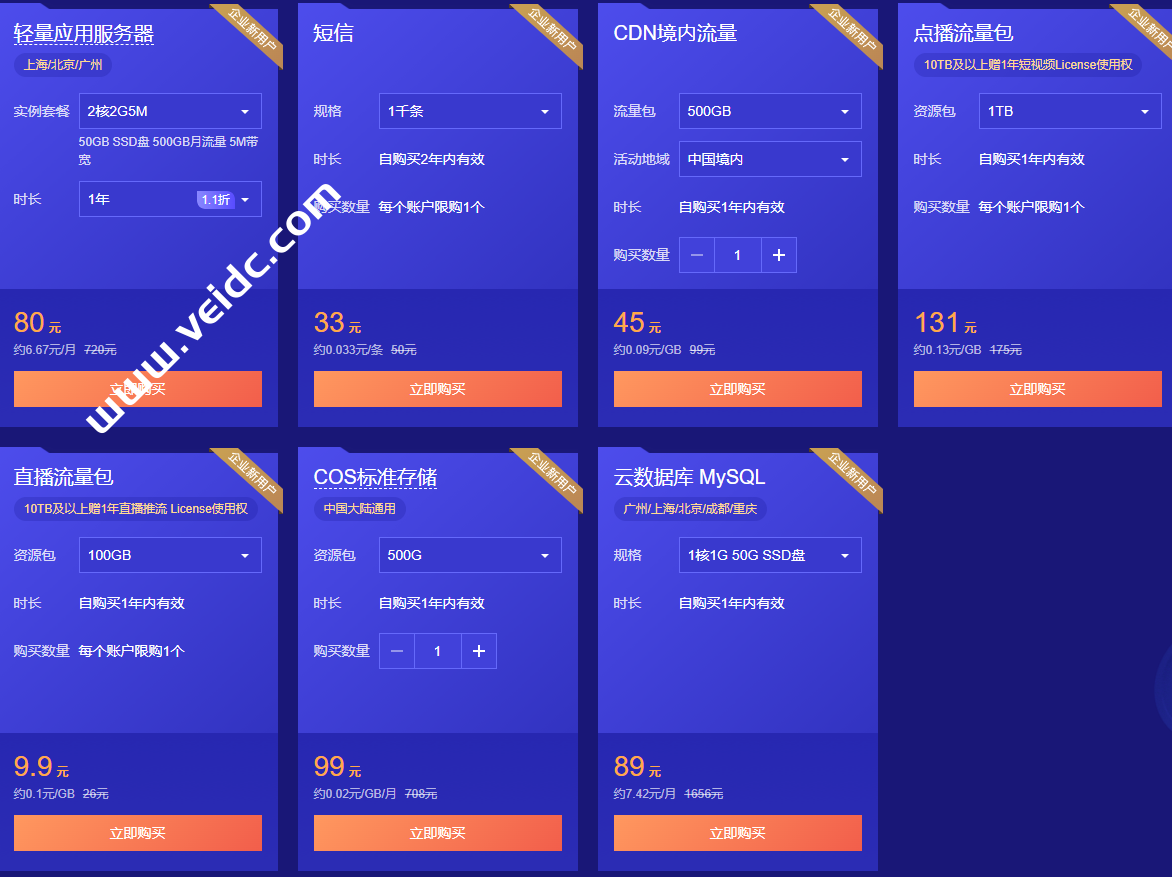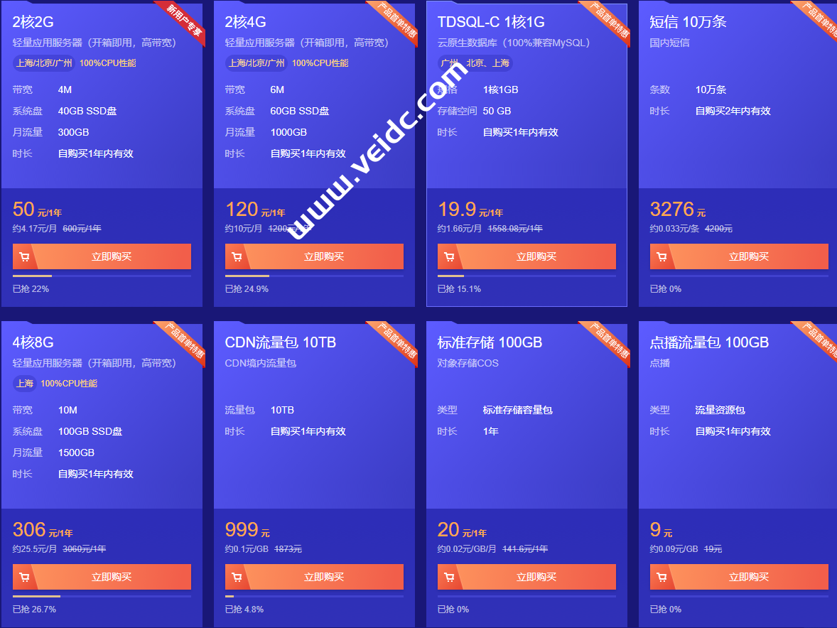 腾讯云4月产品首单物理,24小时秒杀不间断,腾讯云精选爆款,上海、北京和广州轻量应用服务器,2核/2G内存/4M带宽,年付50元起,特惠云数据库19.9元/年起,企业首购低至1.1折,有需要的可以关注一下。