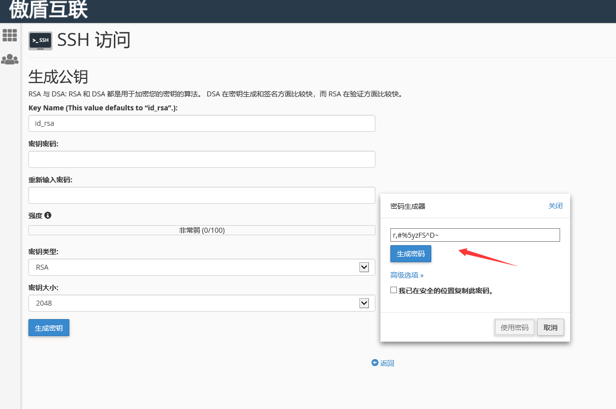 在这里设置一个密码,推荐使用密码生成器,此密码一定要记住并安全保存,在登录时会用到。