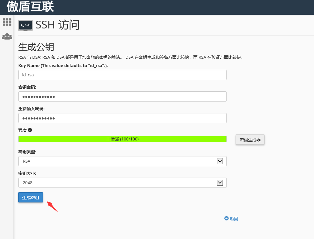 输入刚刚生成密钥的密码,这个密码一定要切记。登录成功
