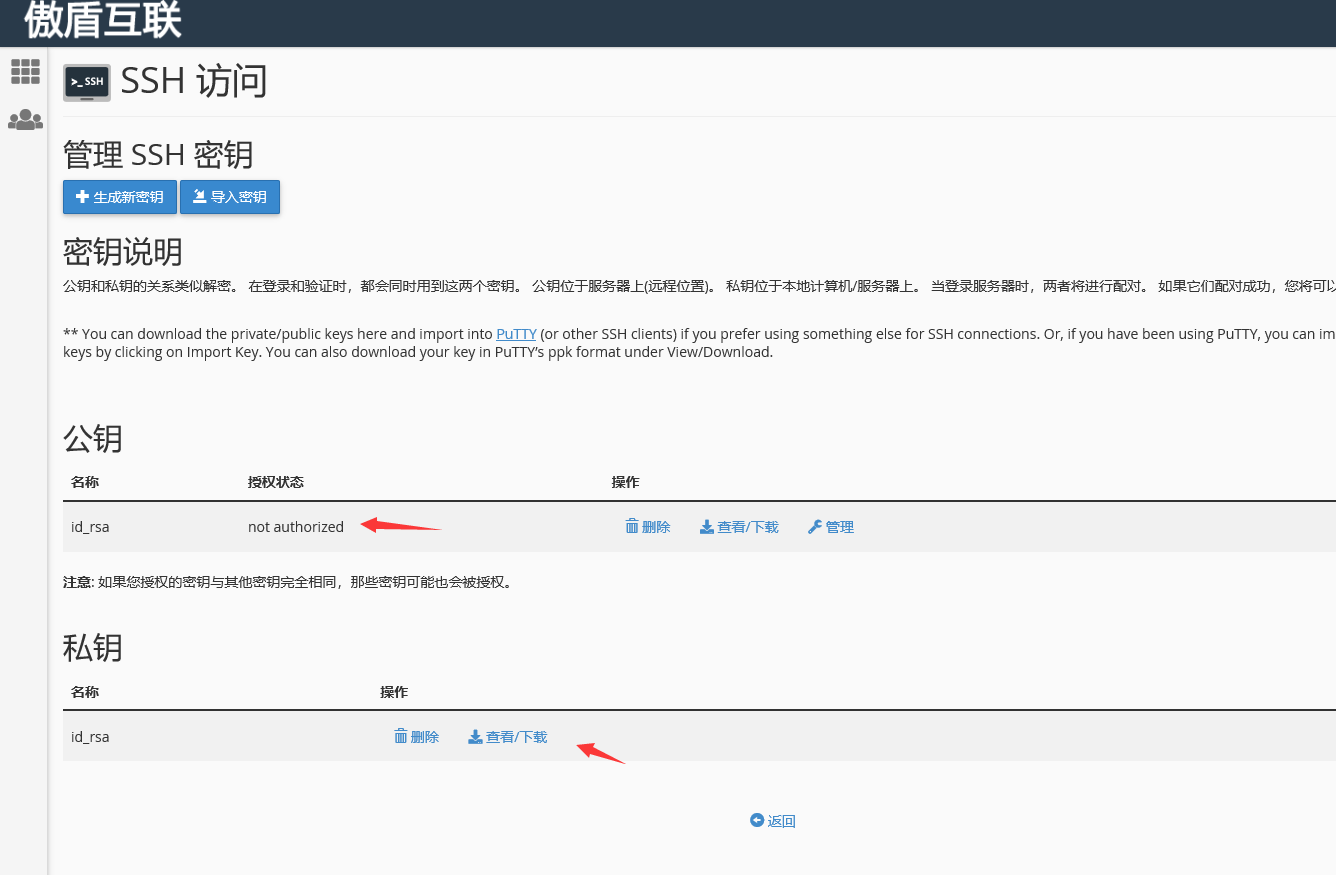 点击下载,并保存到可靠的地方。到这里,cPanel面板操作结束。下面请打开putty,如果没有此工具,请自行下载。