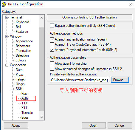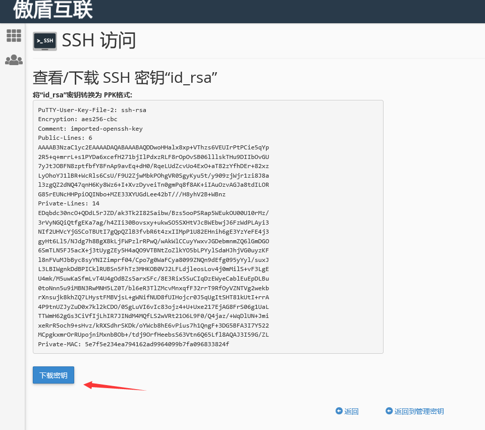 返回,然后下载私密钥。在这里最好将密钥转换为 PPK格式。方便后面putty使用。转换需要用到刚刚生成的密码。