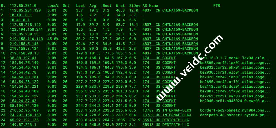 联通去程,骨干网对接cogentco: