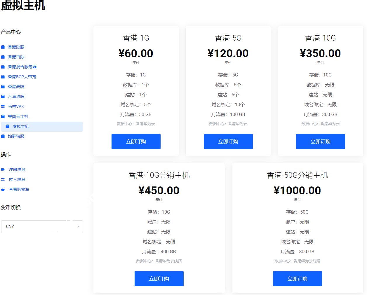 博鳌云的香港主机只提供linux主机,分为普通虚拟主机和分销主机,采用DirectAdmin多语言面板,点击直达购买链接。