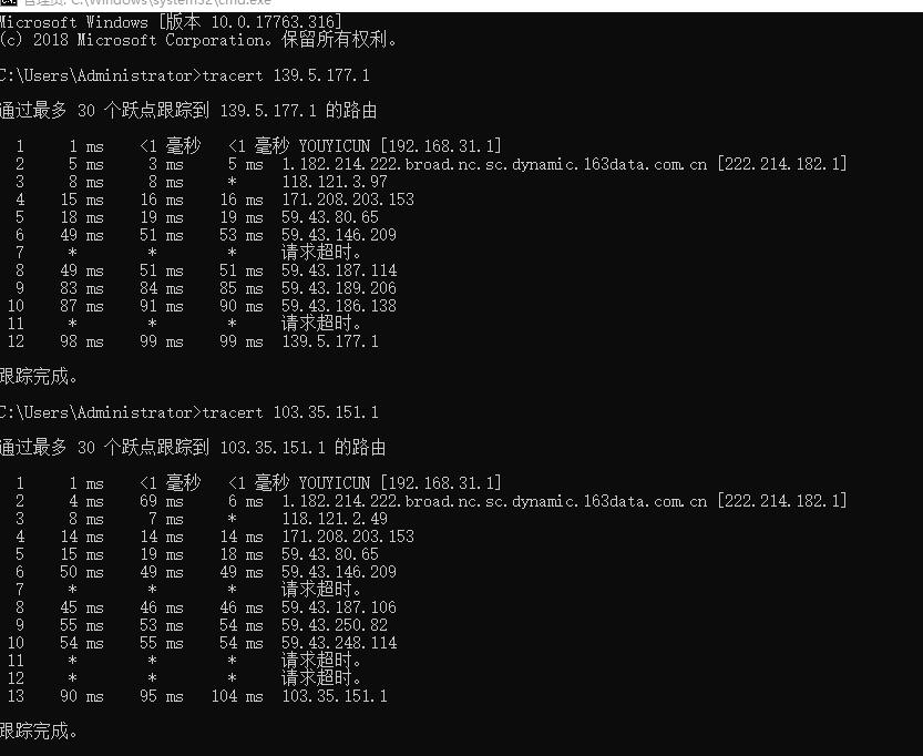线路测试:香港:103.35.151.1 马来:139.5.177.1