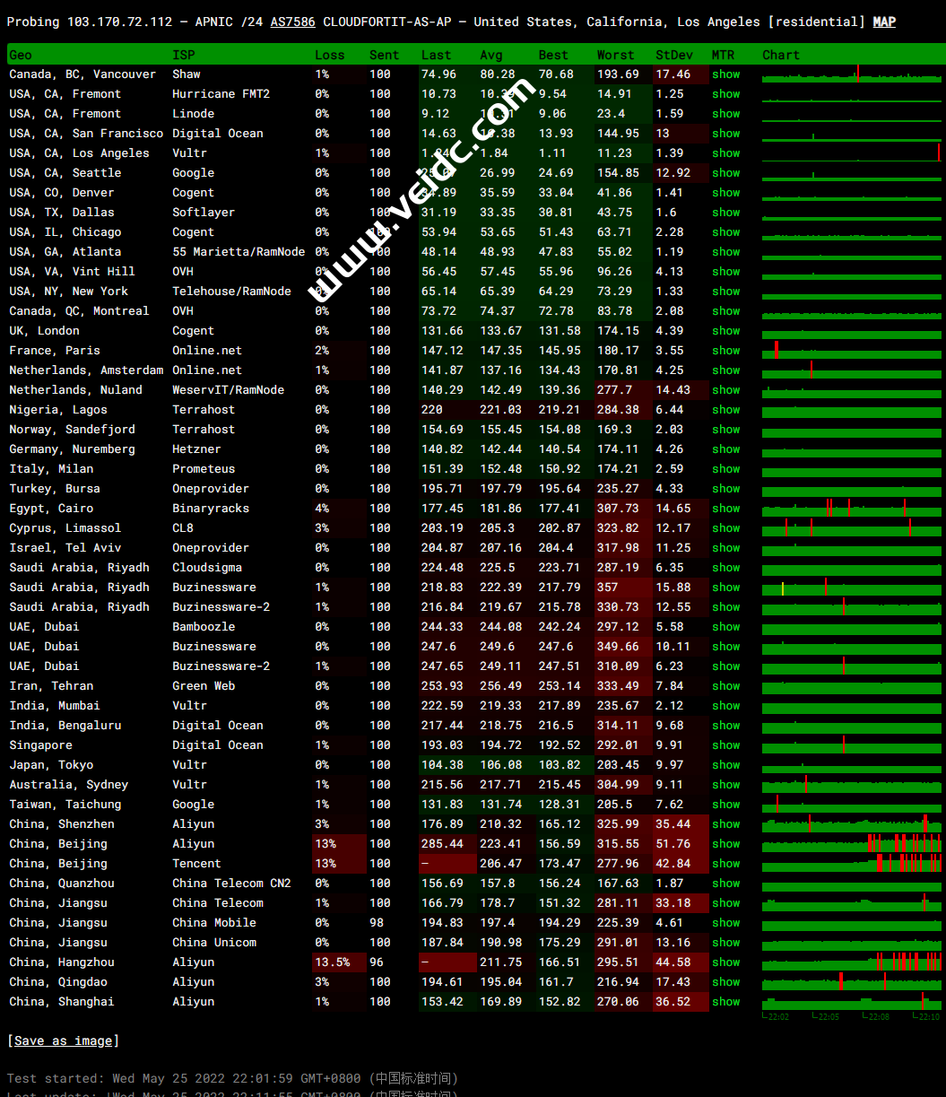 ping.pe丢包率测试: