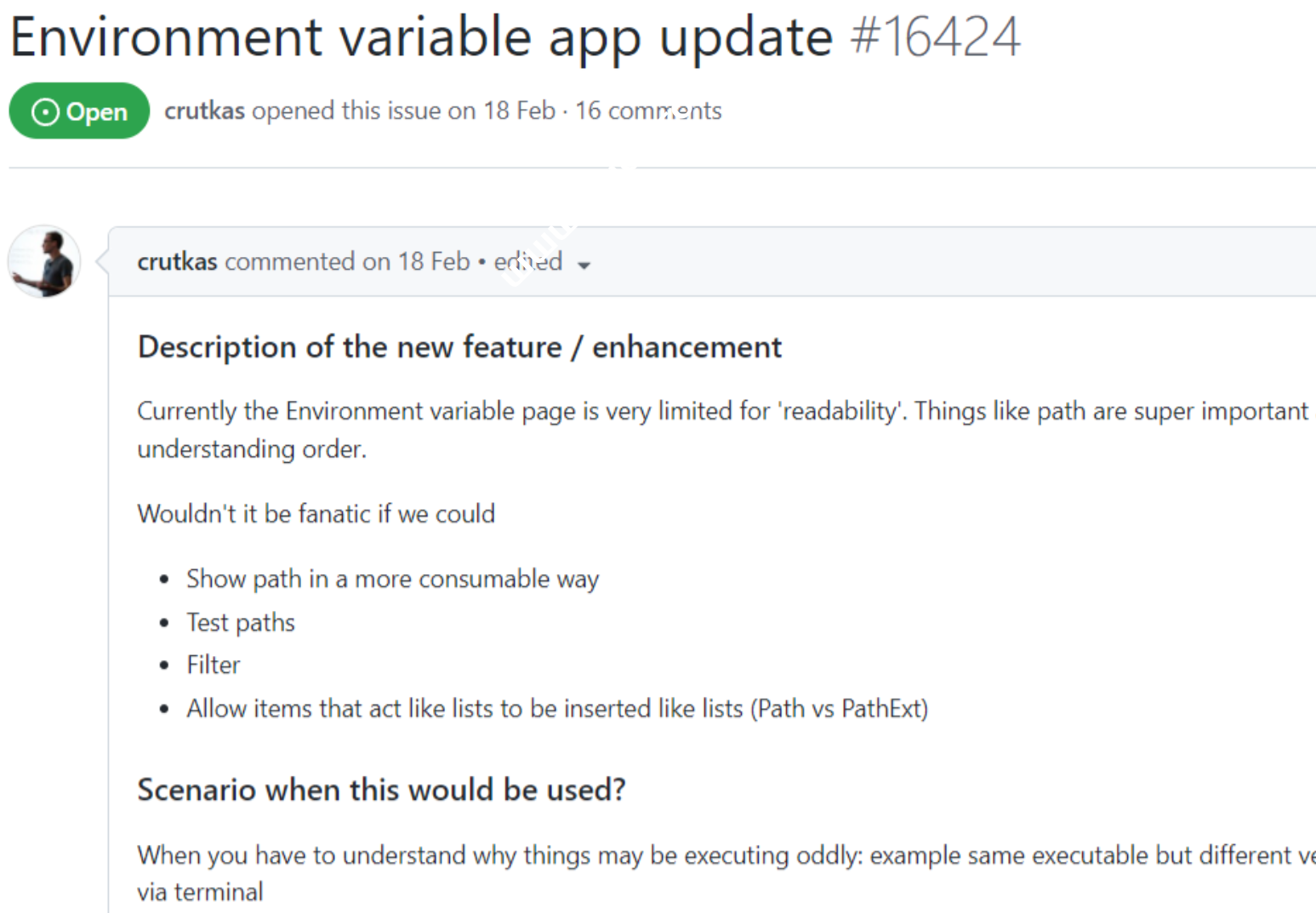 在 PowerToys 的 GitHub 页面,微软已经承认环境变量页面的“可读性”非常差,初学者很难理解路径或指定文件夹等内容。