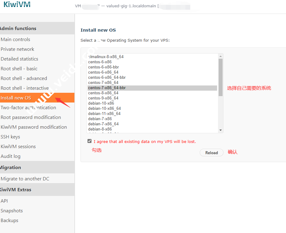 在前文我们介绍了最新的搬瓦工官网VPS购买教程,详情查看:2022年最新搬瓦工VPS购买图文教程,但是有网友问小编如何选择系统?其实在购买过程中老杨也没有发现操作系统选项,默认开通的VPS是Centos 7 x86_64 bbr系统,有的朋友可能要用到其它系统,那么怎么办呢?本文就介绍一下通过KiwiVM面板重装系统教程。