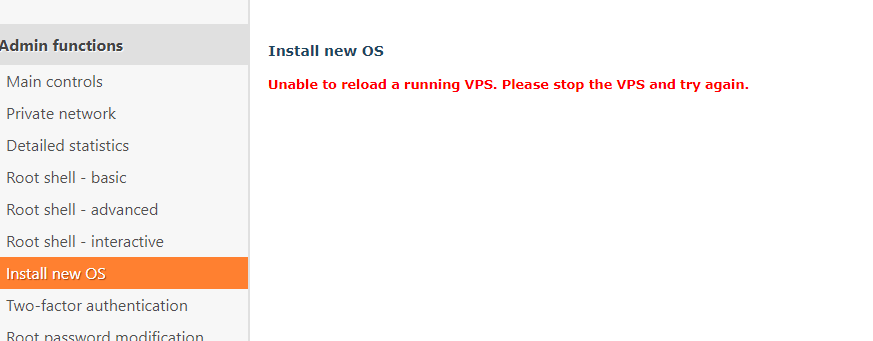 很多用户会碰到这个问题,这是因为我们在安装系统时没有停止VPS,这里写教程专门列出了此问题,点击Main controls返回,点击stop(停止)