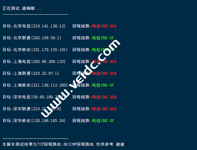 一键检测VPS回程国内三网路由