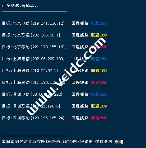 一键检测VPS回程国内三网路由