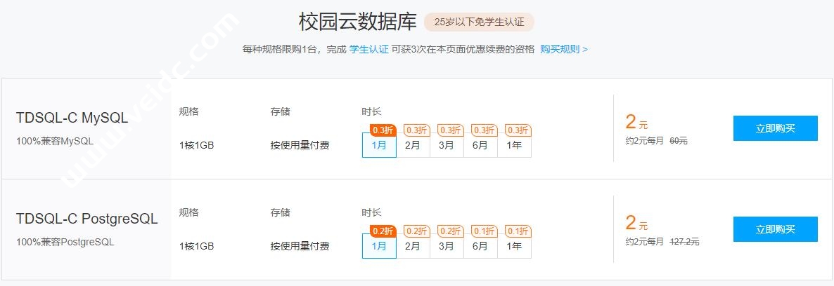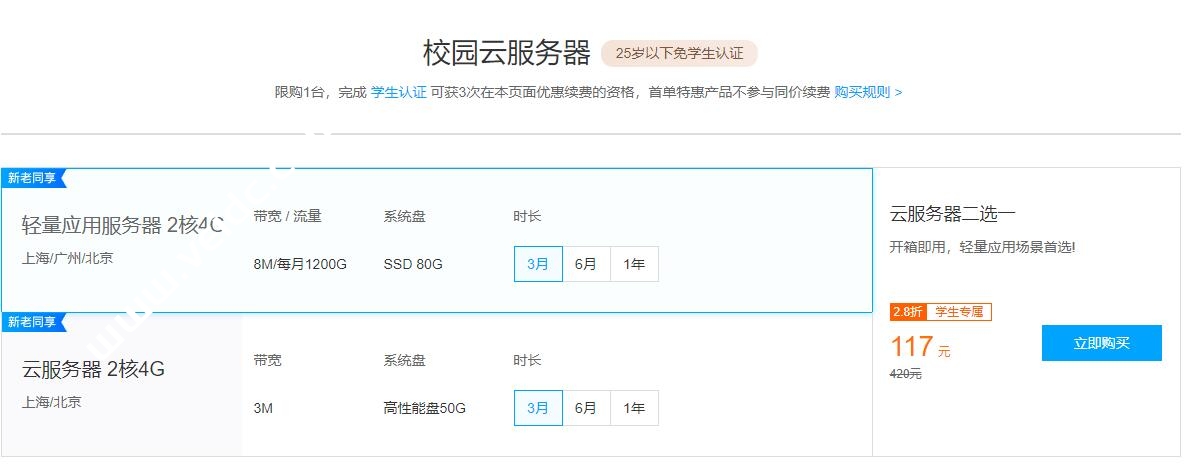 每种规格限购1台,完成学生认证可获3次在本页面优惠续费的资格