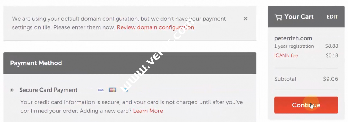 付款信息输入完成后,请点击最右侧的按钮【Continue】: