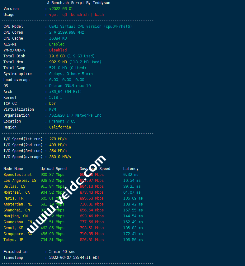 本次测评机房为搬瓦工美国弗里蒙特机房(US: Fremont, California [USCA_FMT]),测评机器依旧为2核1G20GBSSD,也就是下表红色价格季付$49.99的这个经典款,注意:国外主机测评的老用户应该知道,我们只分享最新的测评数据,并不做评价,大家在看测评的时候自行分析,下面就来看看最新的测评数据分享。