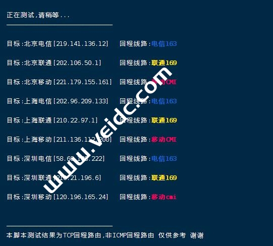 Route-trace 四网路由快速测试: