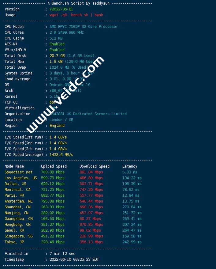 GreenCloudVPS,国内喜欢叫”绿云“、”绿云VPS“,主要运作便宜vps,提供日本、香港、新加坡、美国、荷兰等机房,在全球31个数据中心部署有服务节点,涵盖北美、欧洲和亚洲地区。有提供高端AMD+DDR4+NVMe系列高性能VPS,全部接入1Gbps-10Gbps带宽。本文主要测试一下绿云的英国考文垂机房VPS,本次测评包括站长全球PING、ping.pe丢包率、性能和带宽、路由去程和回程、油管实测、Fast实测、流媒体平台及游戏区域限制和Tiktok区域检测,下面就来看看最新的测评数据分享。PS:上午测评网络还可以,下午基本没法看。。购买请慎重。