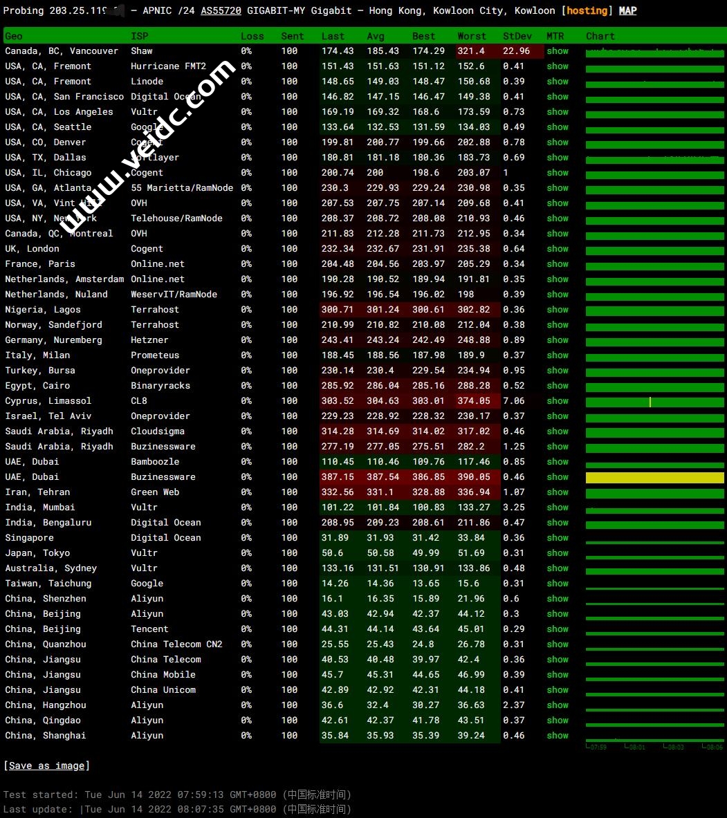 GreenCloudVPS,国内喜欢叫”绿云“、”绿云VPS“,主要运作便宜vps,提供日本、香港、新加坡、美国、荷兰等机房,在全球31个数据中心部署有服务节点,涵盖北美、欧洲和亚洲地区。有提供高端AMD+DDR4+NVMe系列高性能VPS,全部接入1Gbps-10Gbps带宽。本文主要测试一下绿云的香港机房VPS,本次测评包括站长全球PING、ping.pe丢包率、性能和带宽、路由去程和回程、油管实测、Fast实测、流媒体平台及游戏区域限制检测,下面就来看看最新的测评数据分享。PS:GreenCloudVPS香港从PING、延迟、丢包率表现上看来还不错,但是这1Gbps的端口很水,实测就几M,而且测速脚本根本就跑不了,IP就会进小黑屋,所以不用想着用来上网什么的,从稳定性上表现来看,比较适合建站。