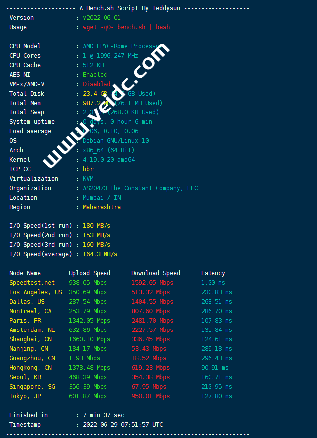 Vultr印度孟买机房云主机测评