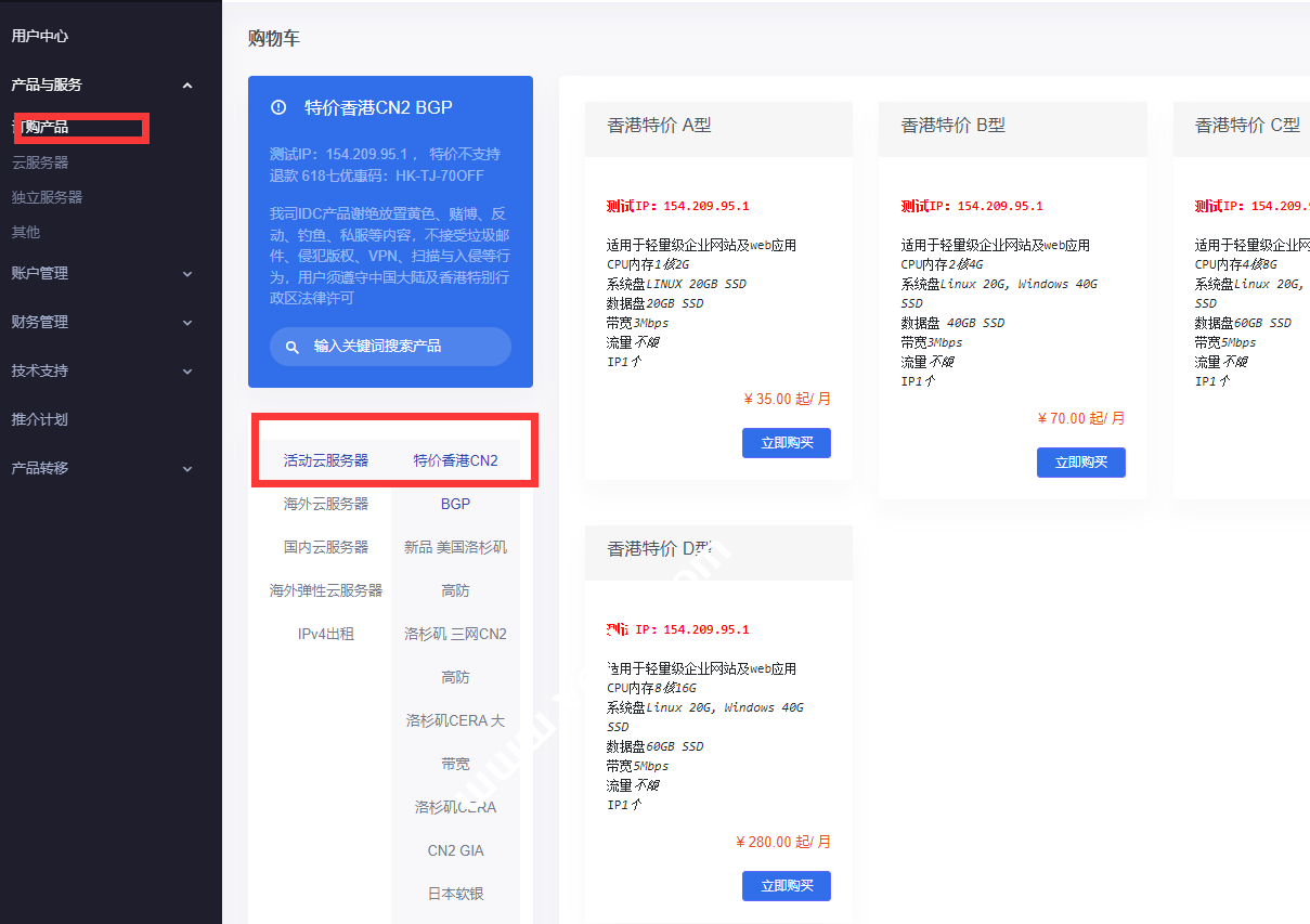 该线路不允许退款 防御:200G 线路:电信联通移动三网回程CN2 GIA,除了最便宜款,其他都支持windows,此外linux系统盘默认20G,windows系统盘默认40G,系统赠送数据盘第一款除外!以下默认是按照linux系统盘来计算。洛杉矶 三网CN2 高防优惠码: LAX-GF-70OF
