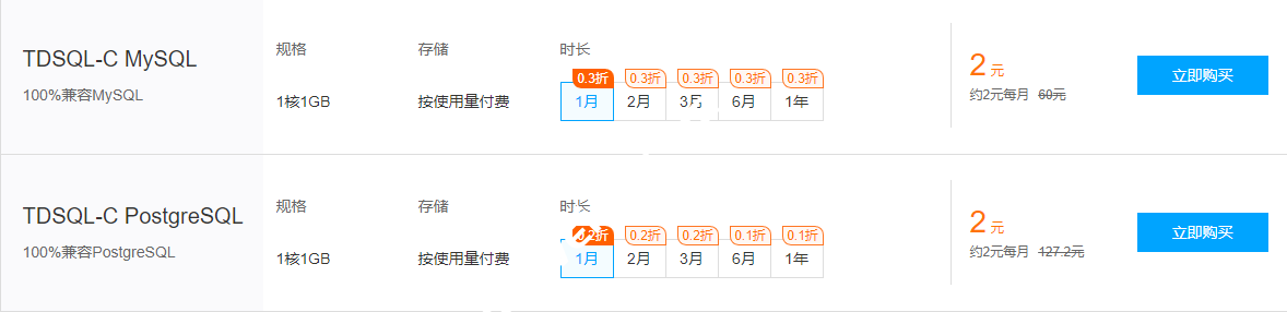 这里包括MySQL、PostgreSQL数据库。同时,还包括Serverless云函数产品。