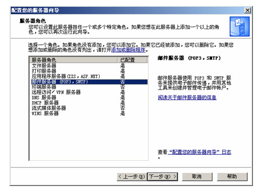 邮件服务器的安装其实就是PO3、SMTP服务相关组件的安装,本文主要为大家介绍如何利用配置您的服务器向导进行安装邮件服务器。