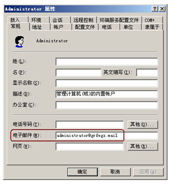 当所创建的用户邮箱名与域系统中已有用户帐户名一样时,就不要选择为此邮箱创建相关联的用户复选项了,直接输入与用户帐户一样的邮箱名即可。这样,系统会自动在他们的用户帐户中配置以邮件服务器域名为尾缀的电子邮件地址,如图所示。否则将创建一个以所输入的用户名+000为用户名的用户帐户,就像上图中提示那样的Iren000,这是因为原来在系统中已存一个Iren用户帐户。