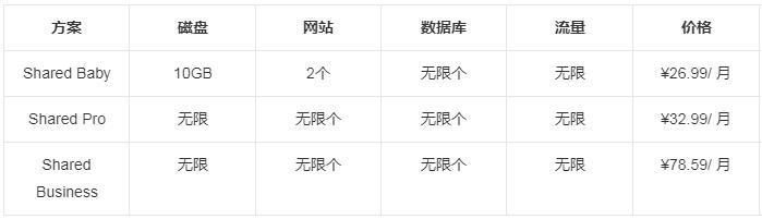 配置:无限磁盘空间、无限月流量、可建无限个网站、无限个数据库,价格¥32.99/ 月(三年)