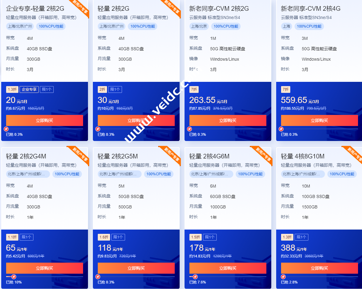 | 4核 | 8G | 100G | 10M | 1.5T | 412元/年 | 直达 |