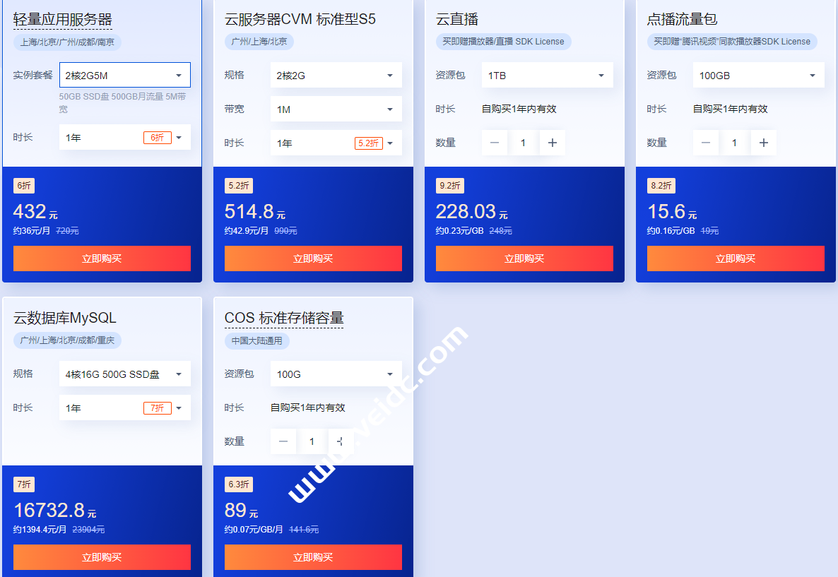 腾讯云7月份促销,云产品特惠专区有多款云产品0.6折起,买云服务器送免费机器,最长免费续3个月,性价比最好的还是轻量云服务器,不过还是新用户的专属活动。72元/1年(2核2G4M),192元/1年(2核4G6M),可选上海/广州和北京地区,有需要的朋友可以关注一下。