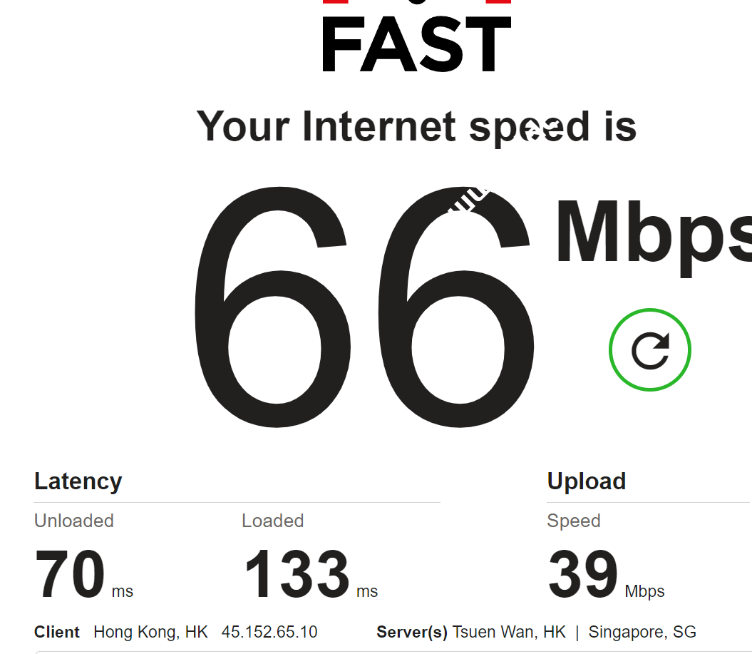 既然无法跑带宽测试,那我们来看看fast.com测试如何。