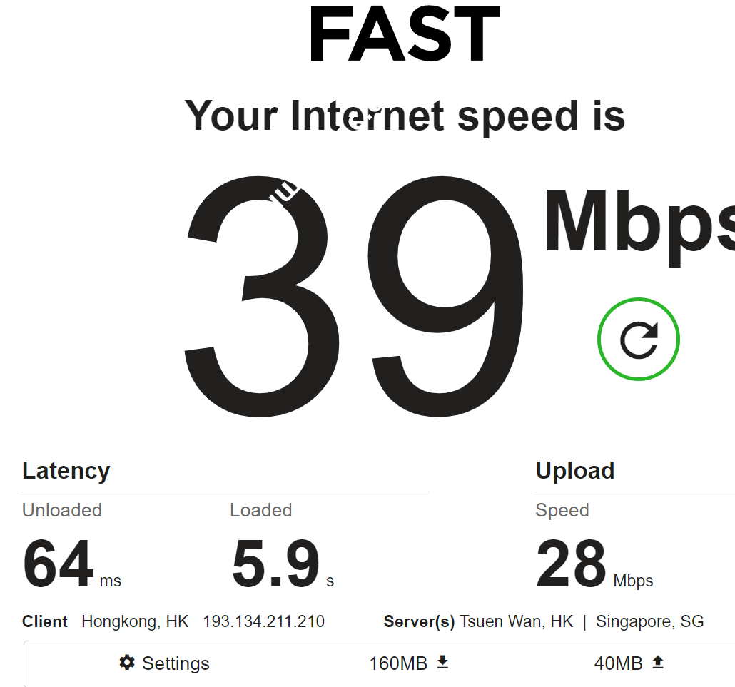 既然无法跑带宽测试,那我们来看看fast.com测试如何。