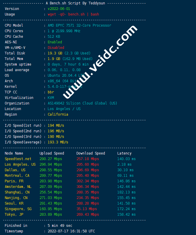 美国洛杉矶国际线路VPS测评
