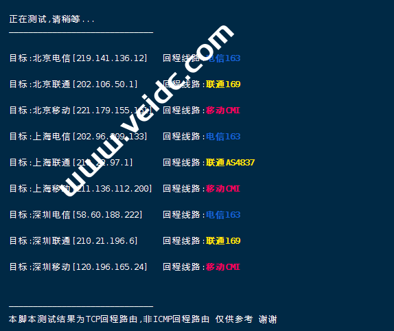 一键检测VPS回程国内三网路由