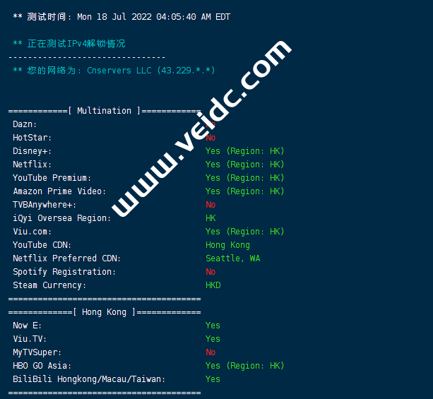 VoLLcloud再一次完成HK CMI节点带宽扩容,大大提高网络吞吐量,同时,推出了两款香港CMI大带宽VPS,带宽高达400-500M,1个香港原生IP,IP支持奈非迪士尼+流媒体解锁。地区HK线路。 三网线路回程皆为CERA CMI,去程电信163带防御。三网都能直连拉满。全国地区延迟极低。本文就来实测一下具体表现如何,测试机型为HK-Group 13,其实大家都知道买这个VPS是做什么用途的,因此我们主要测试了包括线路和带宽、流媒体和上网体验等,详情查看下文吧。