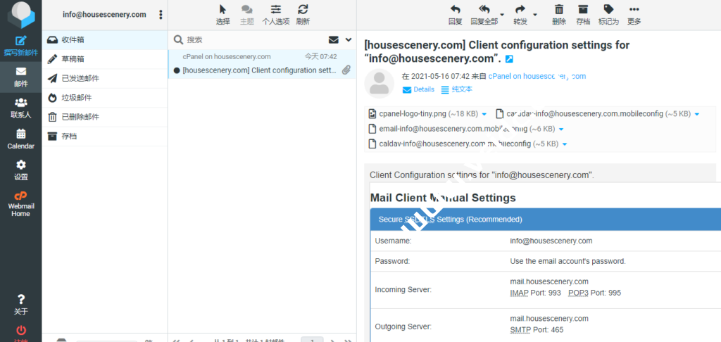 第一封邮件就是关于你的邮箱参数及配置。