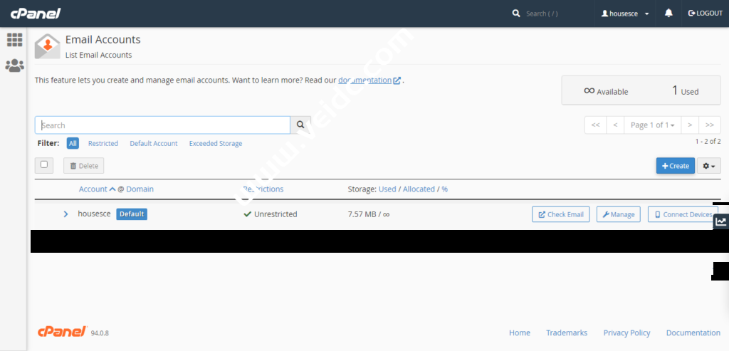 点击蓝色按钮Create创建新的邮箱账户。