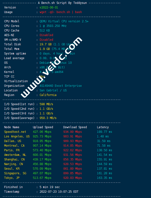 前文测评了Evoxt的英国云服务器,说实话在国内使用实在一般,Evoxt现在就只有英国和美国数据中心,美国云服务器位于洛杉矶,采用的是M.2 NVMe存储,性能方面提升不少,本文我们来看一下Evoxt的美国云服务器具体表现如何。