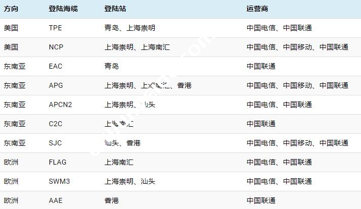 美国方向主要海缆是跨太平洋直达高速光缆(TPE);