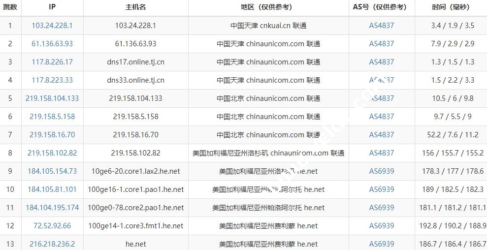 he对于联通来说质量比cogent稍高一点,属于基本可用的那种,丢包并不高,但走he的主机商个人很少见到。。。
