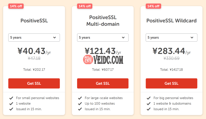 这里NameCheap的SSL证书也是有活动的。但是需要注意的,如果我们买多年SSL证书,每年都需要重新激活。