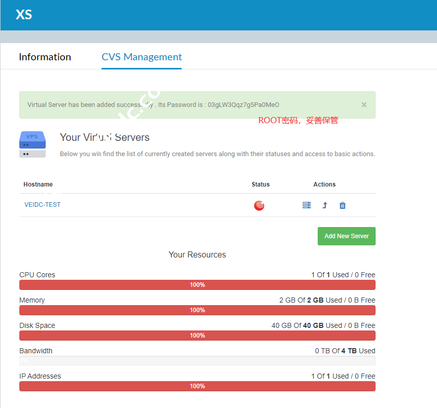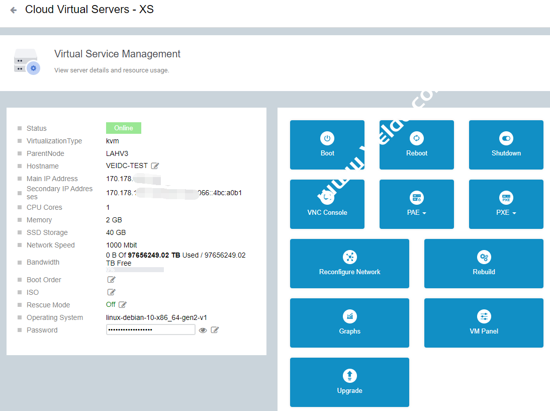 下面就是VPS管理页面控制台,这里可以看到所有信息: