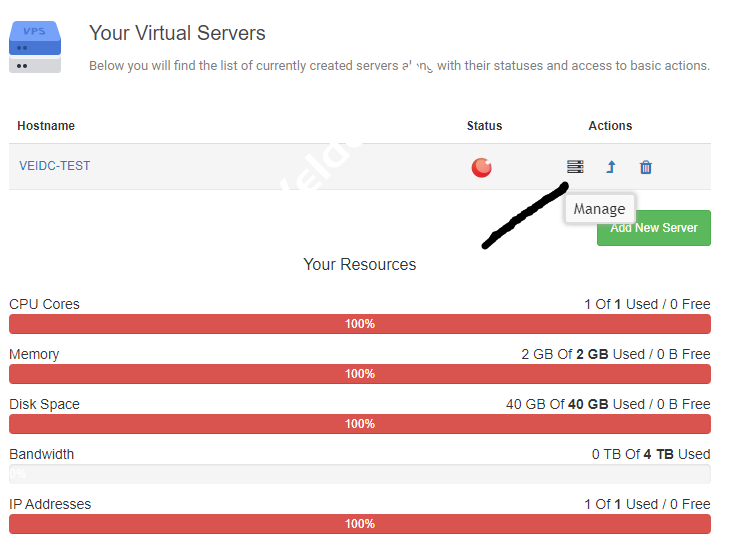 到这里我们还看不到IP地址等信息,需要点击Manage进入VPS管理页面: